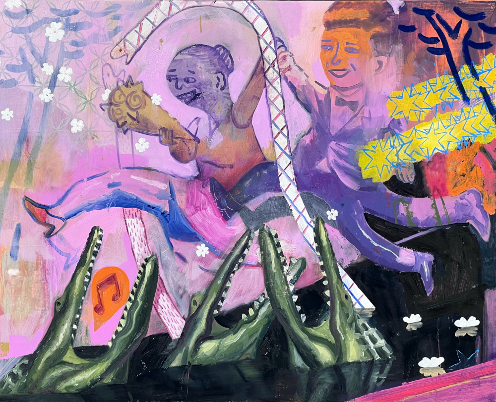 Influenced by Buddhist art, I think of figures as expressions of inner or psychological states. I’m especially drawn to wonder—its ability to imply that that change and transformation are possible. Working in oil and acrylic, I let uncertainty remain visible, creating tension between images and leaving space for the viewer to participate in the construction of meaning.