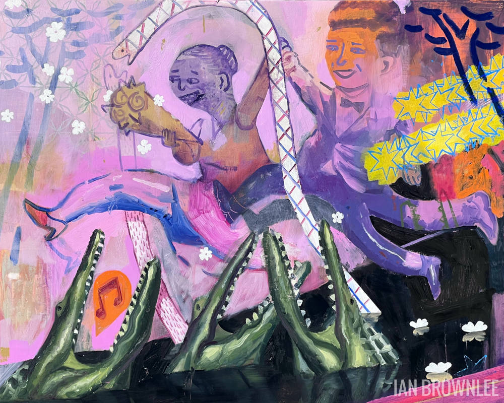 I never know how a painting will turn out. Each one is a way of working through contradictory beliefs and desires as they surface in the act of painting. The images come from my own life, but they’re shaped by feeling rather than linear narrative.